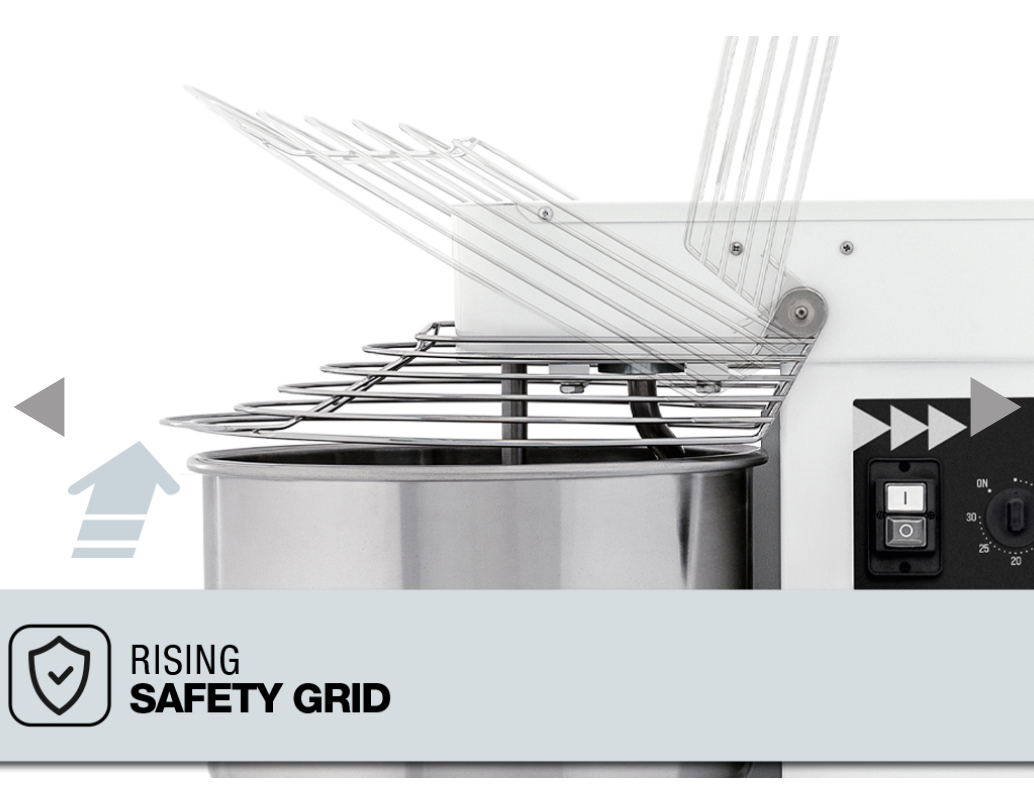 L’impastatrice a spirale Prismafood è la macchina ideale per pizzerie, panetterie e famiglie. La speciale forma della spirale consente di ottenere impasti perfettamente amalgamati in pochi minuti. La vasca, la spirale, il piantone centrale e la griglia di protezione sono in acciaio inox. Il sistema di trasmissione è realizzato con motoriduttore a bagno d’olio. Tutte le macchine hanno in dotazione lo spaccapasta.