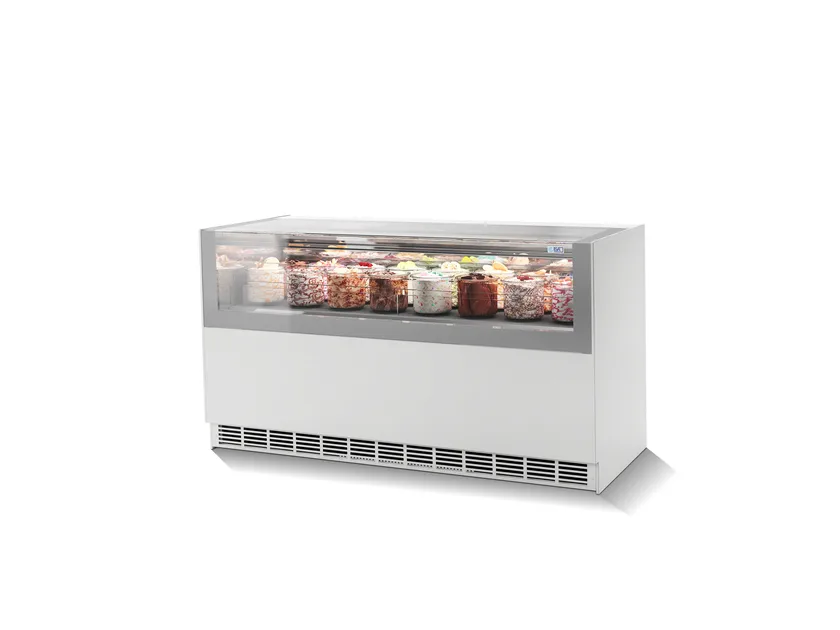 Massima flessibilità e perfetta gestione dei cicli stagionali. La funzione Dual Temperature (optional) consente infatti alla vetrina di passare con estrema semplicità da Gelateria a Pasticceria, e viceversa, permettendo di avere un locale multifunzionale con un unico prodotto: possibilità di variare stagionalmente l’offerta e il layout dello spazio.