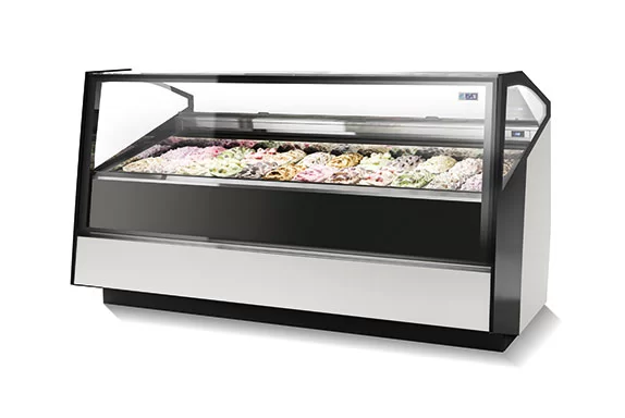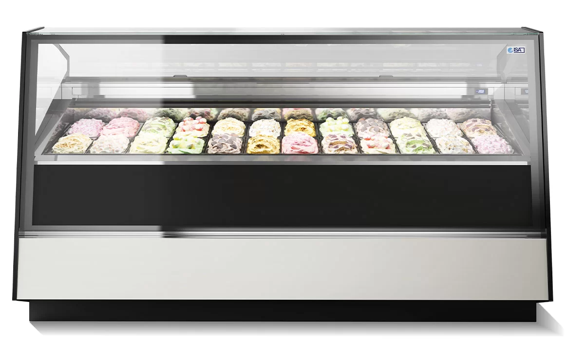 La vetrina gelato ISA STRATOS nasce da un attento studio delle esigenze del consumatore con un occhio all’innovazione nel campo del design contemporaneo.
