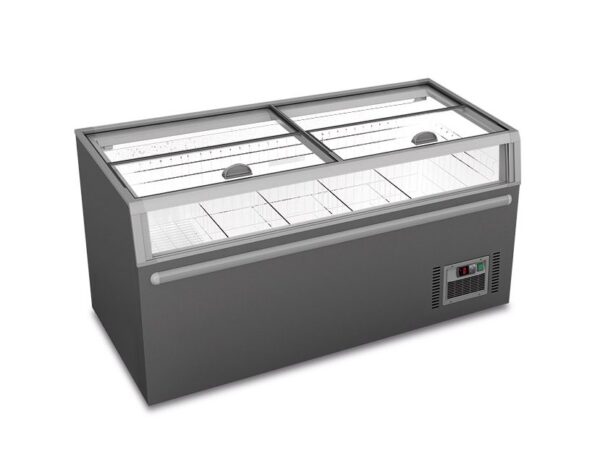 L’isola statica panoramica per supermercato con sbrinamento automatico e doppia temperatura MANHATTAN 14 è realizzato in lamiera preverniciata con trattamento anticorrosione. Questo frigo congelatore orizzontale è dotato di 2 porte scorrevoli, una vetrina freezer e di un sistema di refrigerazione statico con sbrinamento automatico che garantisce una temperatura uniforme e una conservazione ottimale degli alimenti. Il vetro piatto scorrevole permette una perfetta visibilità dei prodotti esposti e facilita l’apertura e la chiusura. Il freezer MANHATTAN 14 ha una capacità di 402 litri, un termostato elettronico per il controllo della temperatura, 4 piedini, 2 separatori interni, un design pulito e funzionale che si integra perfettamente in qualsiasi supermercato e misure 1450 x 850 x 870.