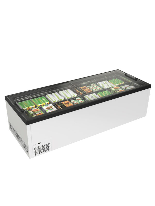 - Massima visibilità dei prodotti esposti grazie ai vetri piani scorrevoli senza profili plastici