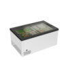 - Massima visibilità dei prodotti esposti grazie ai vetri curvi scorrevoli senza profili plastici