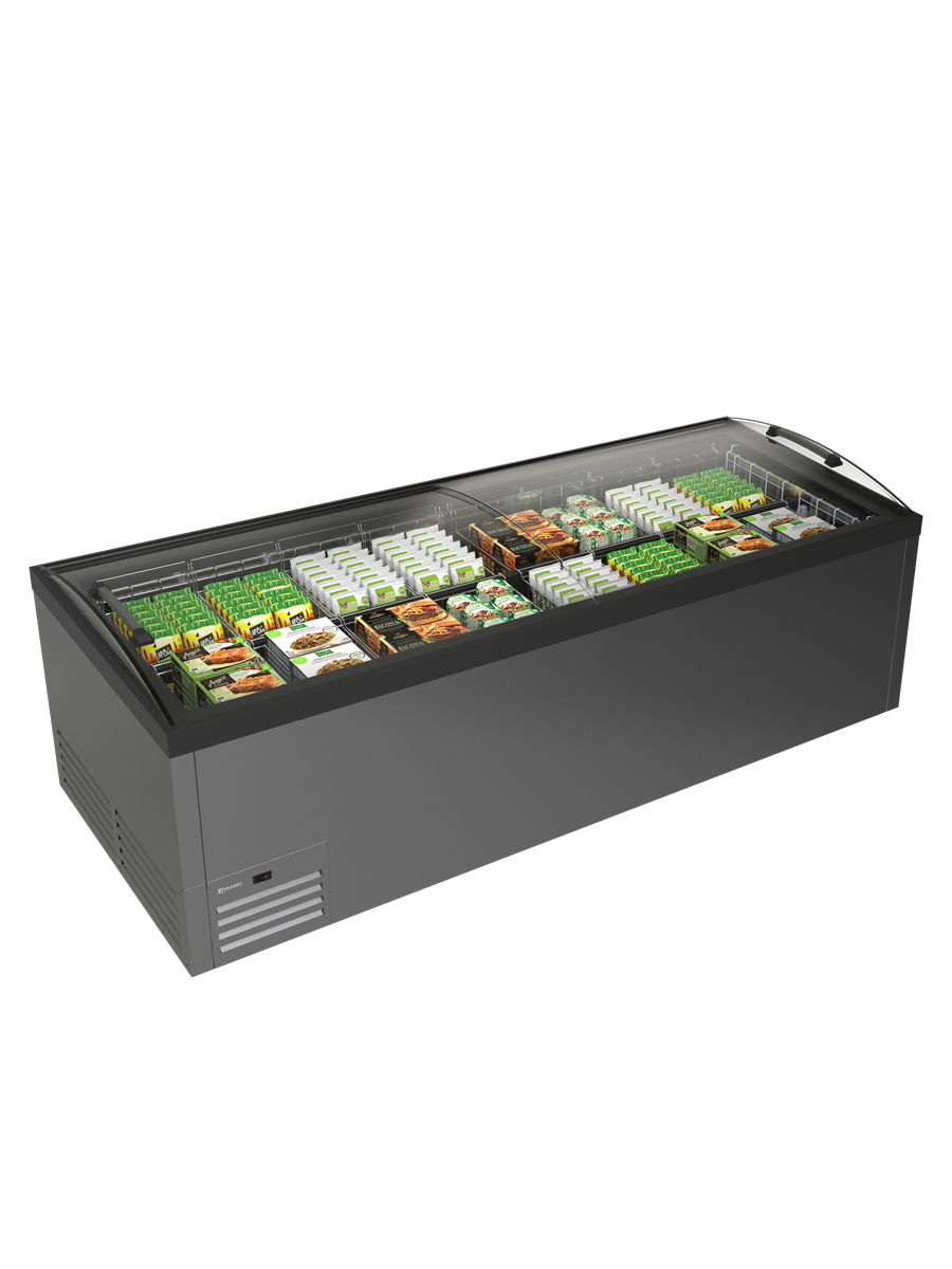 - Massima visibilità dei prodotti esposti grazie ai vetri curvi scorrevoli senza profili plastici