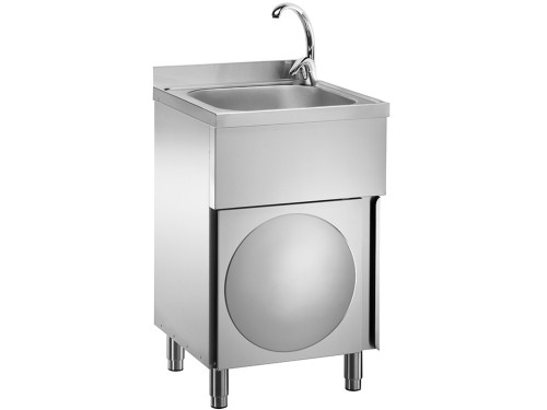 | Descrizione | Lavamani e lavautensili con mobile. Lavamani e utensili su mobile in acciaio inox – porta battente – miscelatore acqua calda/fredda vasca da 40x40x25(h) cm. |