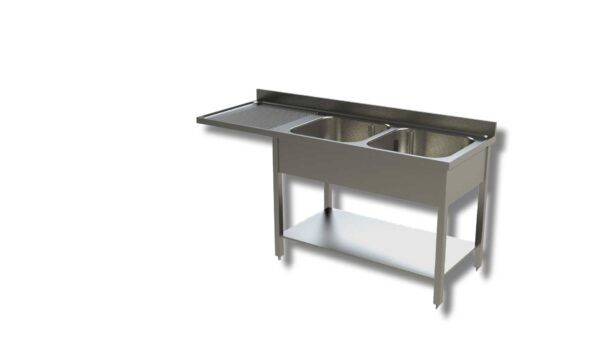 LAVATOIO IN ACCIAIO INOX CON 2 VASCHE E VANO LAVASTOVIGLIE SX – Prof. cm 70