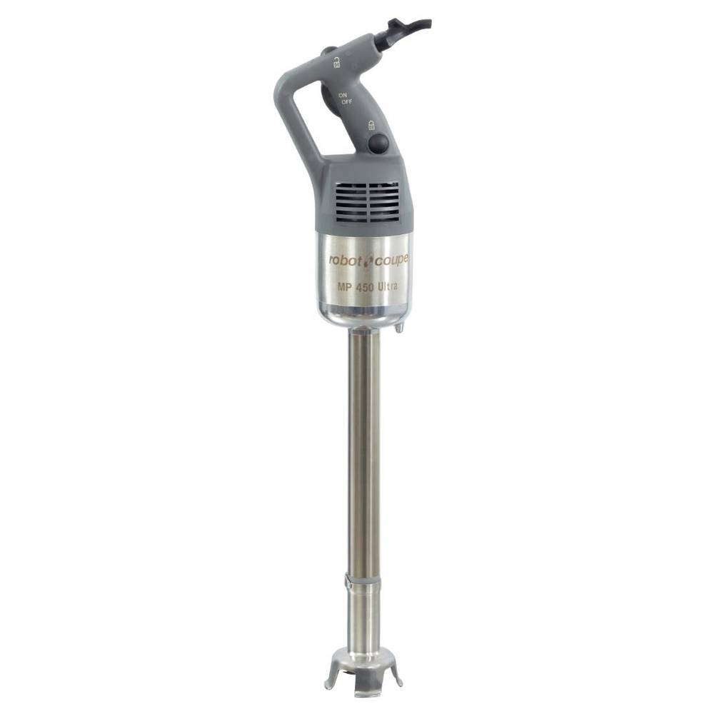 Mp 450 ultra di Robot Coupe, il frullatore ad immersione ancora più efficace ed ergonomico. Speciale per uso intensivo, adatto per collettività e rosticcerie. Questo mixer può frullare, mescolare ed emulsionare fino a 100 l di preparazione in pochissimo tempo. Qualità di miscelatura ottimale e un prodotto finito estremamente fine in pochissimo tempo.