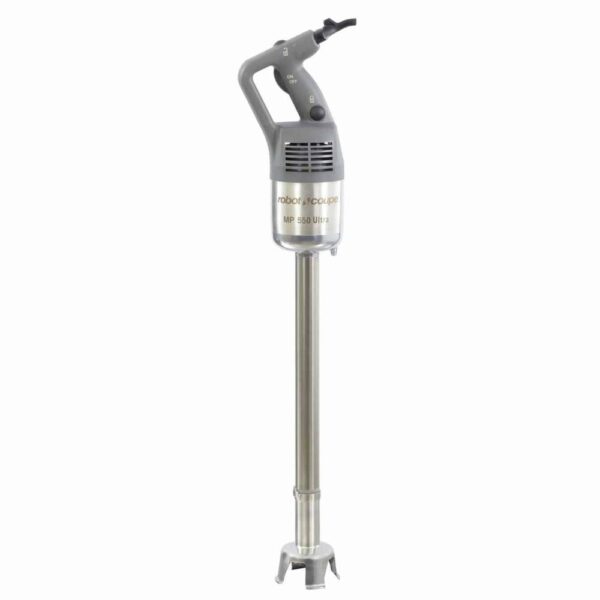 Mp 550 ultra di Robot Coupe, il frullatore ad immersione ancora più efficace ed ergonomico. Speciale per uso intensivo, adatto per collettività e rosticcerie. Questo mixer può frullare, mescolare ed emulsionare fino a 200 l di preparazione in pochissimo tempo. Qualità di miscelatura ottimale e un prodotto finito estremamente fine in pochissimo tempo.