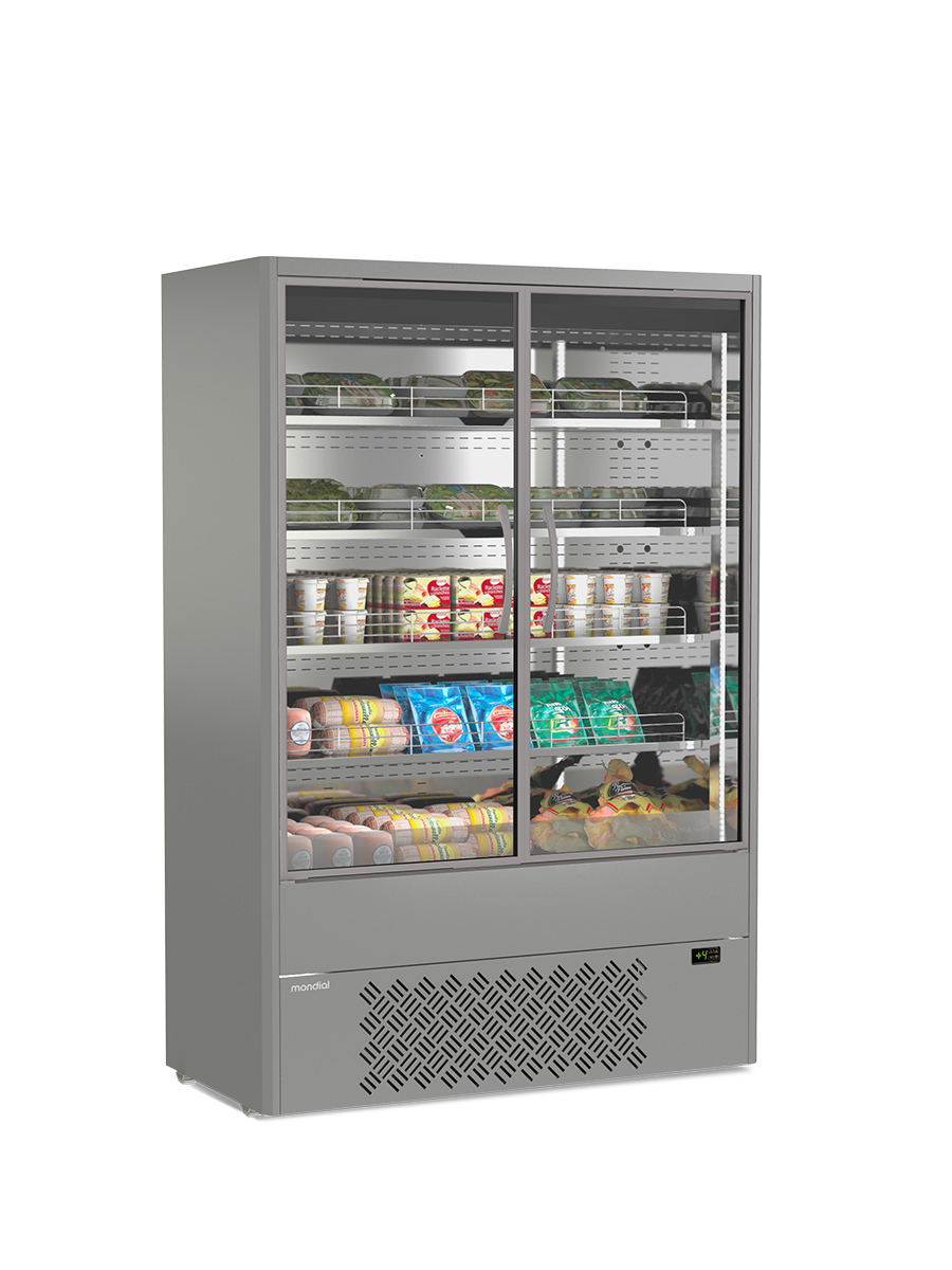 Il Murales 14 X HD Mondial è un espositore murale refrigerato ventilato con porte battenti, progettato per offrire elevata capacità e massima visibilità dei prodotti freschi nei punti vendita.