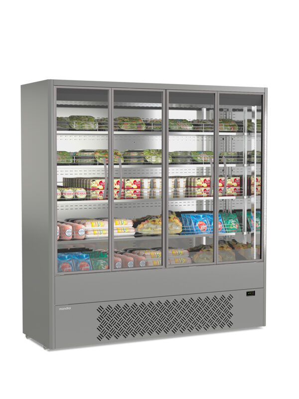 Il murale refrigerato ventilato Mondial MURALES 19 X HD con porte battenti è la soluzione ideale per l’esposizione professionale di prodotti freschi in supermercati, gastronomie e negozi alimentari.