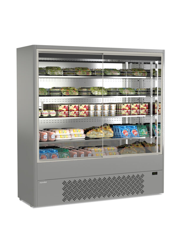 Murale refrigerato professionale Mondial MURALES SD 19 X progettato per garantire massima visibilità e conservazione ottimale dei prodotti freschi in supermercati, negozi alimentari e attività horeca. Grazie alla grande capacità interna e al design verticale, è ideale per valorizzare l’esposizione e aumentare le vendite.