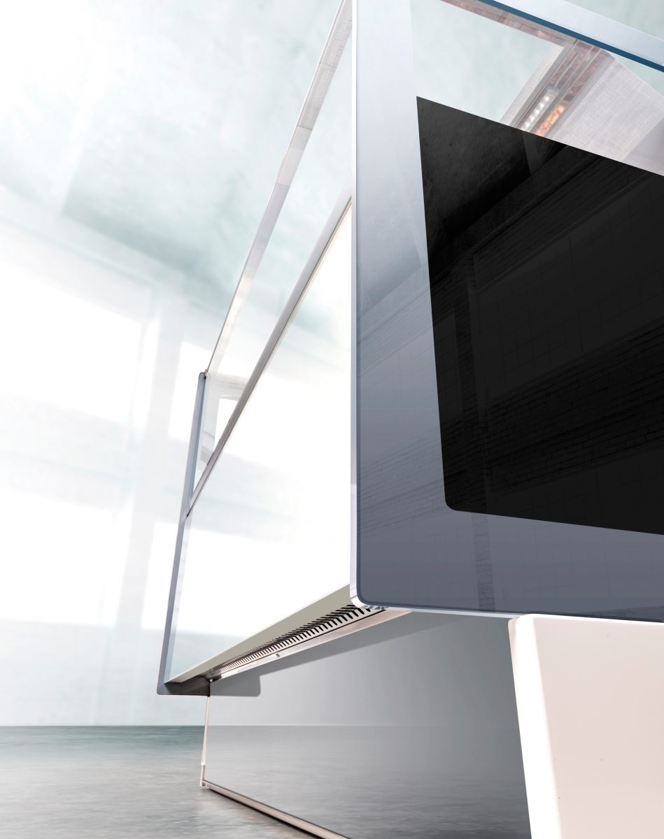 • Vetro frontale monolitico riscaldato apribile verso il basso