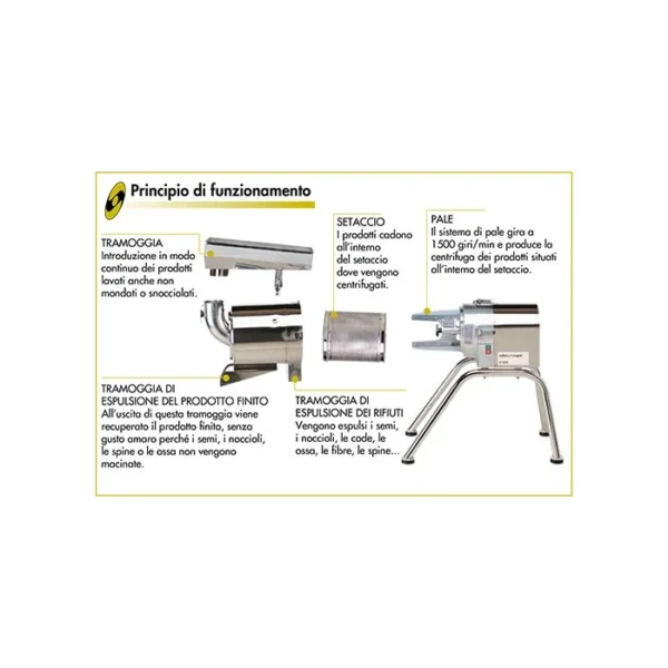 Ideale per passare e denocciolare qualsiasi tipo di frutta e ortaggio