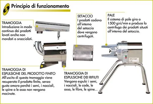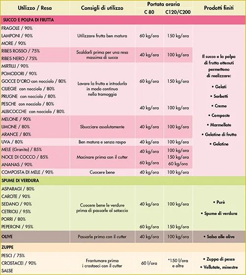 Ideale per passare e denocciolare qualsiasi tipo di frutta e ortaggio