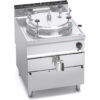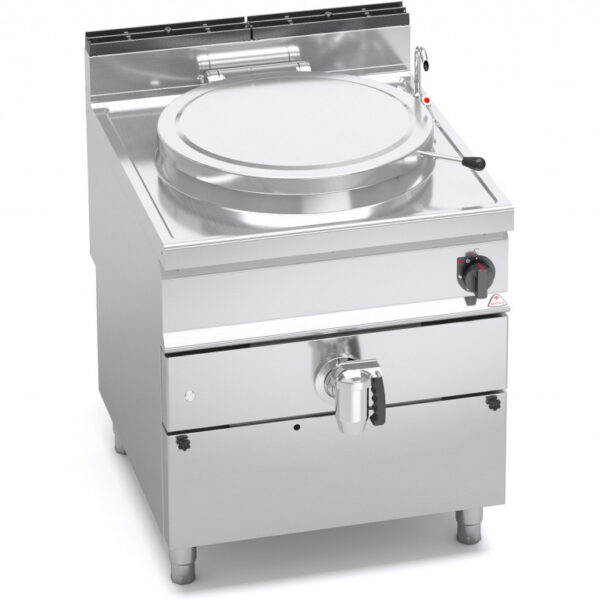 Piano di lavoro e pannelli frontali in acciaio inox AISI 304. Interno in acciaio inox. Recipiente di cottura in acciaio inox AISI 304 con spessore 15/10, fondo in acciaio inox AISI 316 con spessore 20/10. Riscaldamento di tipo diretto, generato da bruciatori tubolari in acciaio inox a combustione ottimizzata, con valvola di sicurezza a termocoppia e fiamma pilota protetta. Accensione piezoelettrica con protezione in gomma. Rubinetti di rabbocco acqua calda e fredda posti sul piano di lavoro con becco erogatore snodabile per il riempimento e il lavaggio del recipiente. Rubinetto di scarico da 2 pollici in ottone cromato con maniglia atermica. Regolazione della temperatura tramite rubinetto con minimo e massimo.
