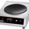 Piastra ad induzione con struttura in acciaio inox e piastra in vetroceramica.