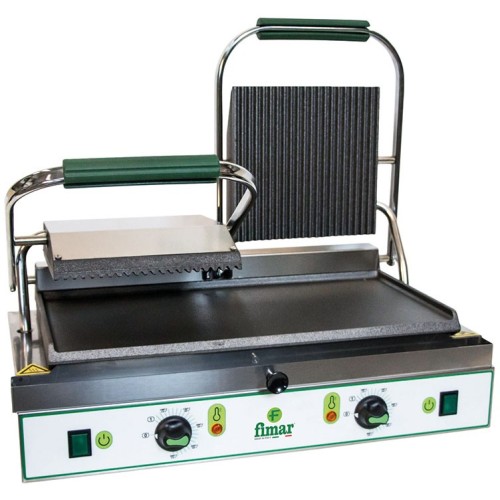 | Descrizione | Macchina per cuocere e riscaldare carne, pesce, uova, verdura, formaggi, toast farciti, panini, ecc. Struttura in acciaio inox – piastra di cottura in ghisa sabbiata, in grado di mantenere a lungo la temperatura – resistenze a contatto con le piastre per garantire una migliore conducibilità – termostato di superiore auto-bilanciata. |