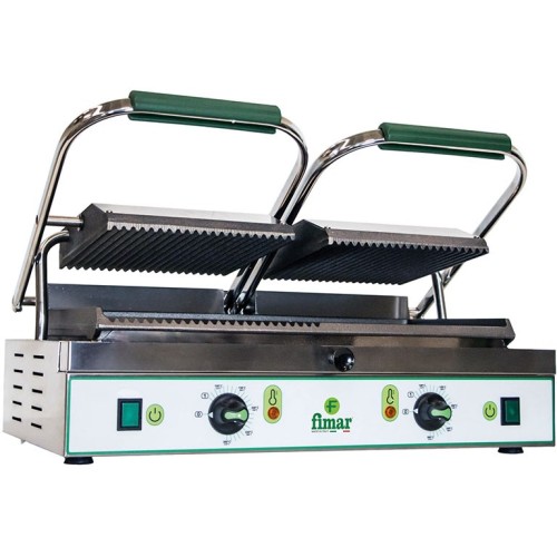 | Descrizione | Macchina per cuocere e riscaldare carne, pesce, uova, verdura, formaggi, toast farciti, panini, ecc. Struttura in acciaio inox – piastra di cottura in ghisa sabbiata, in grado di mantenere a lungo la temperatura – resistenze a contatto con le piastre per garantire una migliore conducibilità – termostato di superiore auto-bilanciata. |