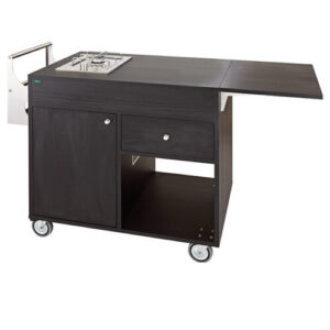 Carrello Flambè – 2 piastre – 2 fuochi – vano porta bombola da 2 kg – 2 ruote con freno ø 100 mm