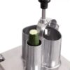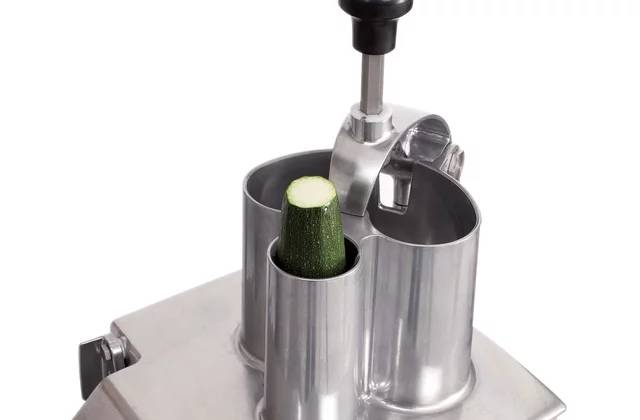 Vasca tagliaverdure e coperchio metallici, facili da smontare per la pulizia. Volume massimo di carico 2,2 lt. La macchina è dotato di una tramoggia grande (superficie 139 cm2) per il taglio di verdure voluminose come il cavolo o il sedano rapa. Può lavorare fino a 10 pomodori in una sola volta. Abbiamo inoltre una tramoggia cilindrica, da diametro 58 mm, per il taglio uniforme dei prodotti lunghi e fragili con una precisione incredibile. Troverete in questo modello anche il pressimo Exactitube, ovvero un riduttore per la tramoggia da 58 mm che porta il diametro a 39 mm per tagliare frutta e verdura di piccole dimensioni come peperoncini, cetriolini, salamini, asparigi, cipollotti, banane, fragole, uva etc. La vasca è inoltre completa di espulsione laterale per risparmiare spazio e velocizzare al massimo la lavorazione. Produzione oraria 150 kg. Riavvio dell’apparecchio tramite pressore.