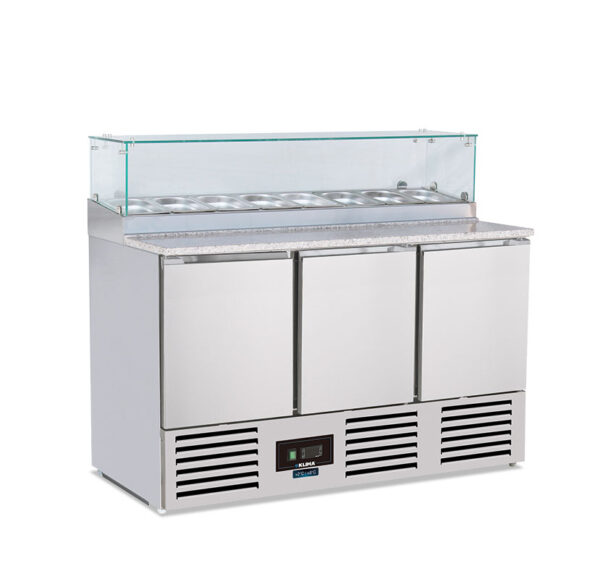 Banco inox AISI 304 3 ante con vetrina refrigerata GN – +2°C / +8°C