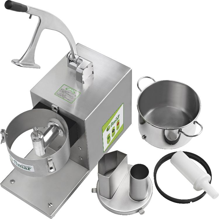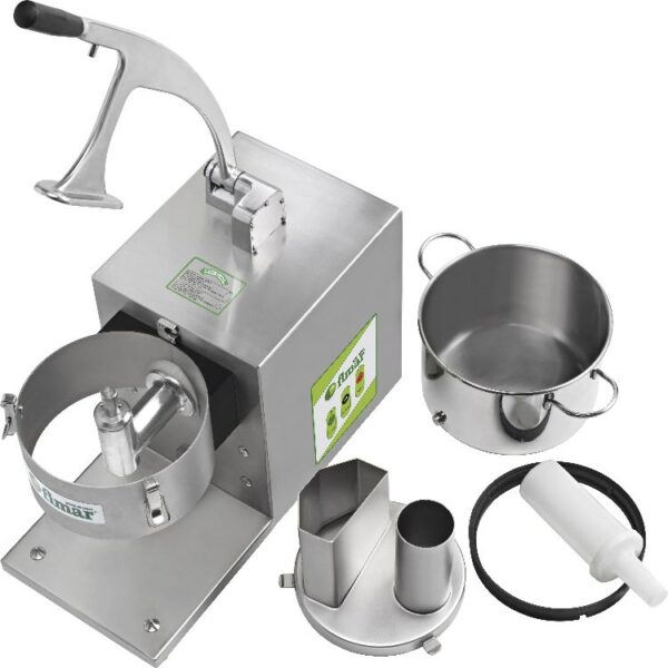 Macchina per tagliare, affettare frutta, ortaggi, verdure in varie forme e misure, grattugiare formaggio, pane secco, cioccolato, nocciole, sfilacciare carote, sedano, patate, mele, rape, barbabietole, mozzarella.