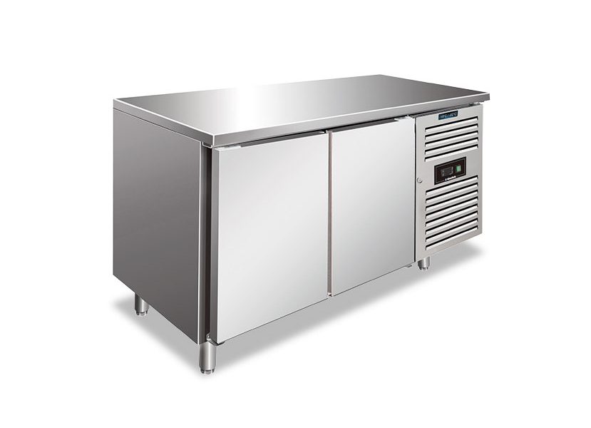 il tavolo refrigerato ventilato a 2 ante a bassa temperatura SNACK 2100 BTF è un tavolo refrigerato con 2 porte e senza alzatina, che garantisce una superficie di lavoro ampia e igienica. Le porte sono cieche con impugnature ergonomiche e guarnizioni magnetiche facilmente estraibili. Il tavolo refrigerato è realizzato con una struttura interna ed esterna in acciaio inox AISI 304, mentre la refrigerazione è ventilata, per mantenere una temperatura costante tra -22°C e -18°C, ideale per la perfetta conservazione degli alimenti. Il termometro è digitale e il regolatore di temperatura è elettronico. Lo sbrinamento è automatico con resistenza elettrica e manuale. La cella frigo è caratterizzata da angoli arrotondati per facilitare la pulizia. I piedini sono in acciaio inox regolabili in altezza. Le dimensioni esterne sono di 136 x 60 x (h) 86/96 cm con una capacità di 172 litri, un peso netto è di 86 kg e una classe climatica è 4. Il tavolo refrigerato dispone di 2 griglie da 33 x 43 cm.