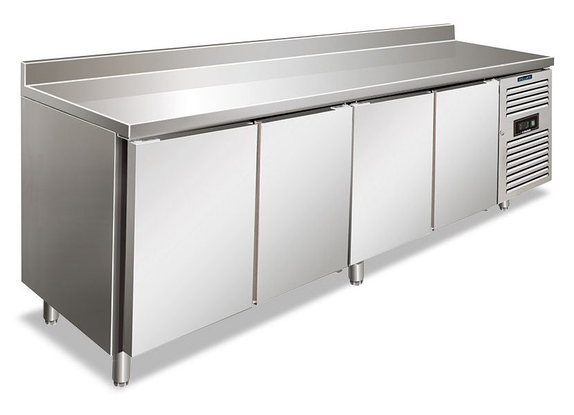 Tavolo refrigerato inox 4 porte con alzatina ventilato