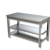TAVOLO IN ACCIAIO SU GAMBE CON RIPIANO ED ALZATINA – Prof. cm 70