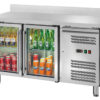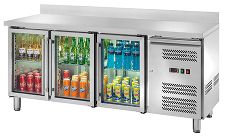 Tavolo Refrigerato Ventilato GN1/1 con 3 porte a vetri e alzatina – AK3204TNG – Temp. -2C°/+8C° – Dim. cm 179,5x70x95
