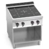 Piano di lavoro e pannelli frontali e laterali in acciaio INOX 304. Interno in acciaio inox.Piano in vetroceramica con spessore 6 mm. Massimo risparmio energetico in quanto il riscaldamento della zona di cottura viene attivato solamente quando la pentola si trova a diretto contatto con la superficie.La zona di riscaldamento si autoregola in base al diametro della pentola. Interruzione automatica immediata nel momento in cui la pentola viene rimossa dal piano. L’indicatore digitale segnala in modo immediato il livello di potenza impostato, da 1 a 9. Regolazione elettronica della temperatura grazie ad un simmostato.