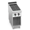 Piano di lavoro e pannelli frontali e laterali in acciaio INOX 304. Interno in acciaio inox.Piano in vetroceramica con spessore 6 mm. Massimo risparmio energetico in quanto il riscaldamento della zona di cottura viene attivato solamente quando la pentola si trova a diretto contatto con la superficie.La zona di riscaldamento si autoregola in base al diametro della pentola. Interruzione automatica immediata nel momento in cui la pentola viene rimossa dal piano. L’indicatore digitale segnala in modo immediato il livello di potenza impostato, da 1 a 9. Regolazione elettronica della temperatura grazie ad un simmostato.