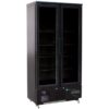 Bottle Cooler con refrigerazione ventilata e statica. Espositori refrigerati verticali o orizzontali per bibite – materiale esterno verniciato nero – interno in alluminio – sbrinamento automatico – termostato di regolazione temperatura elettronico – porta scorrevole per i codici PS – porta a battente per i codici PB.