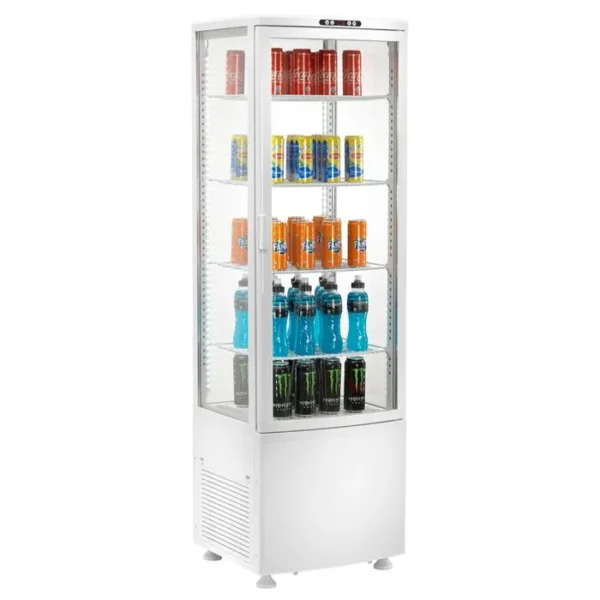 Vetrina Frigo Bibite Positivo Ventilato 4 Lati Vetro – AK236EB – TN 235 LITRI – Temp. 0 °C/+12 °C – Dim. cm L51,5xP48,5xh170