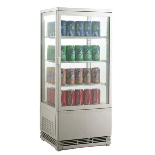 Vetrina Frigo Bibite Positivo Ventilato 4 Lati Vetro – AK78EB – TN 78 LITRI – Temp. 0 °C/+12 °C – Dim. cm L42,8xP38,6xh96