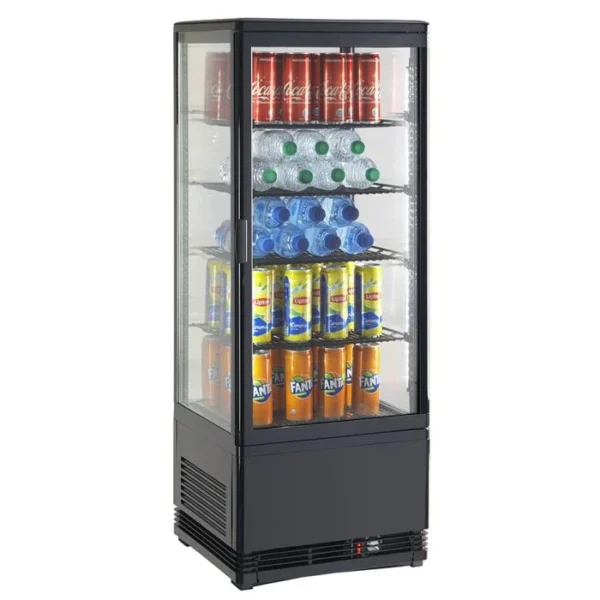 Vetrina Frigo Bibite Positivo Ventilato 4 Lati Vetro – AK98EBN – TN 98 LITRI – Temp. 0 °C/+12 °C – Dim. cm L42,8xP38,6xh111