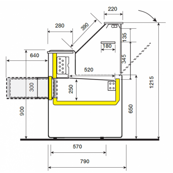 Tibet è un bancone perfetto per la gastronomia, ideale come banco per salumi e formaggi. Profonda solo 79 cm è perfetta per chi ha esigenze di spazio ridotto.