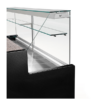 Banco frigo dotato di refrigerazione statica con cella. Zona esposizione in acciaio inox, piano lavoro in granito (rosa).