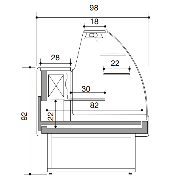 Banco frigo alimentare linea Colorado di profondità 98 cm. Il design elegante e l’ampia superficie espositiva rendono questa vetrina ideale per l’esposizione e la conservazione all’interno di pasticcerie. Prodotto fabbricato in Italia.