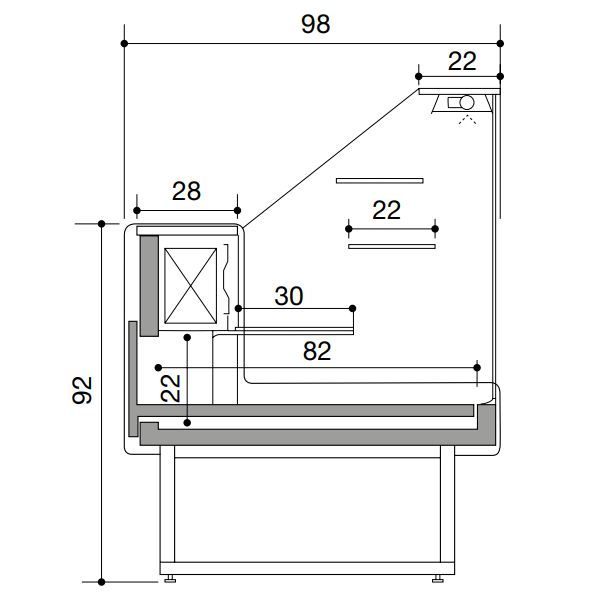 Profondità mensola intermedia: 22 cm
