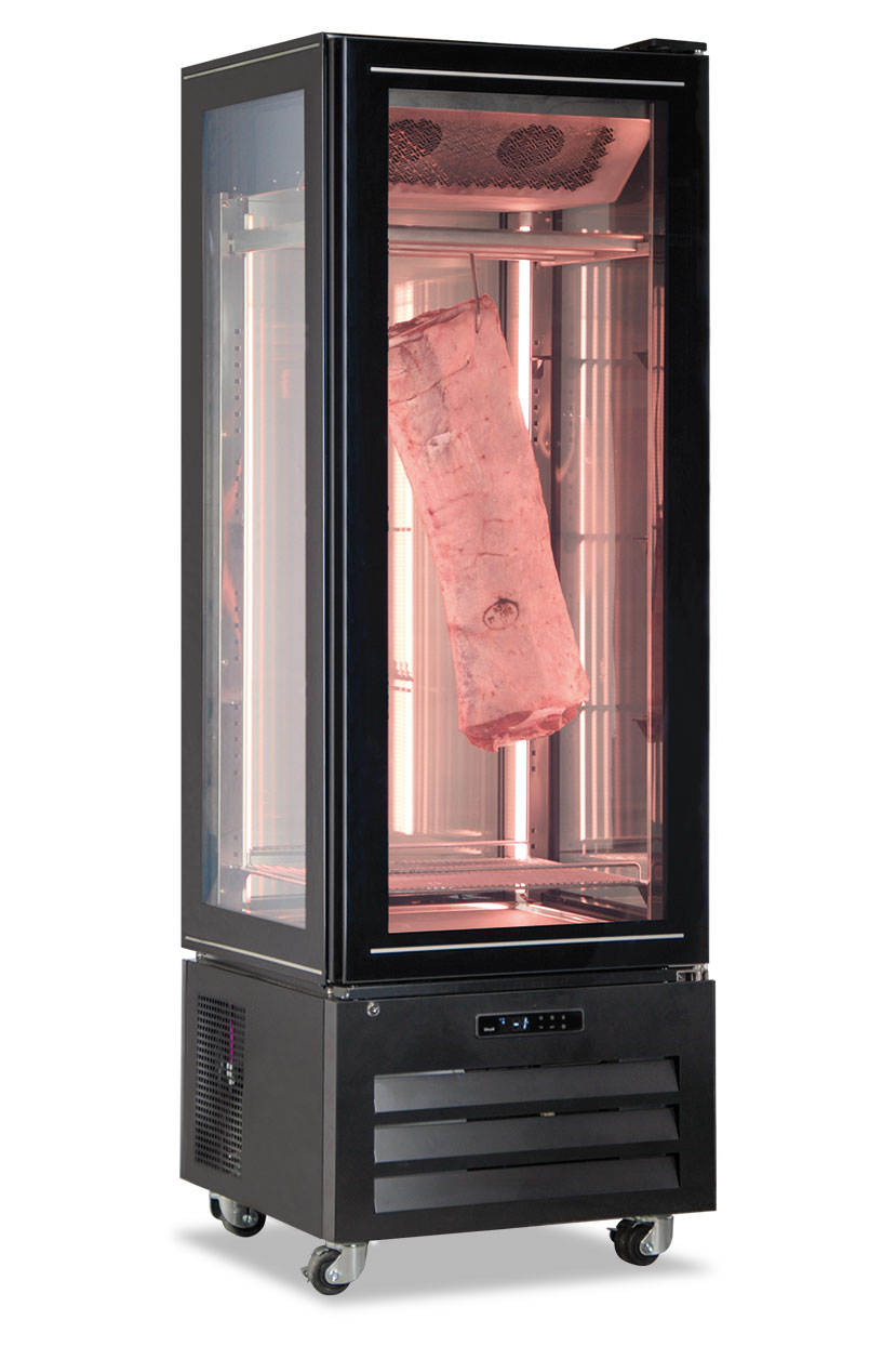 VETRINA FRIGO REFRIGERATA POSITIVA STATICA PER CARNE E GASTRONOMIA 1 PORTA COLORE NERO – TN 340 LITRI – Temp. -1°C/+5°C – Dim. cm. L65xP65xh195