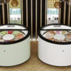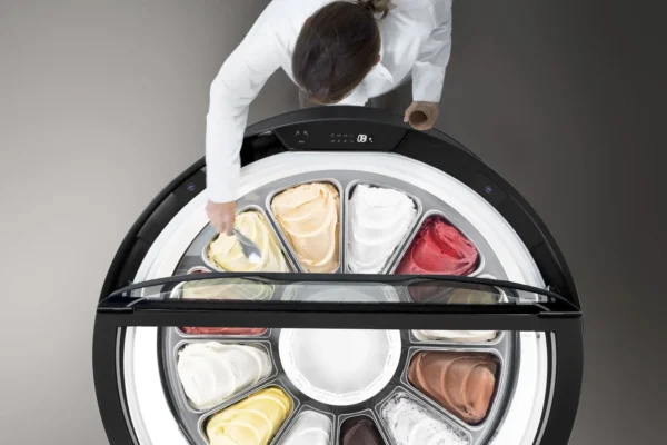 Tonda, la prima vetrina rotonda e rotante della storia, raggiunge una nuova frontiera di usabilità. Con Tonda NUOVA EDIZIONE, il Professionista dirige il movimento delle vaschette gelato portando i gusti a sé con semplici gesti aerei delle mani, in armonia con le azioni di servizio. Tecnologicamente avanzata, con proprietà termodinamiche performanti e un design user-friendly, Tonda mette al centro il lavoro e il comfort dell’operatore. Versatile e disponibile per Gelato, Pasticceria e Pralineria, arreda ogni spazio rendendolo unico. Tonda legge i gesti del Professionista. La vetrina consente di controllare in modalità contactless i movimenti e l’arresto delle vaschette gelato con estrema semplicità e naturalezza. Il sistema di rotazione di Tonda si avvale di tecnologie avanzate derivate dal settore aeronautico, mentre sensori ottici di ultima generazione, ispirati all’automotive, rilevano i gesti dell’operatore e assicurano una gestione fluida e precisa dei movimenti delle vaschette, anche quando le mani sono occupate.