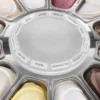 • Il disco centrale in Krion® bianco accoglie il sistema magnetico di segnagusti che consente alle targhette di restare in posizione durante la rotazione (targhette optional).