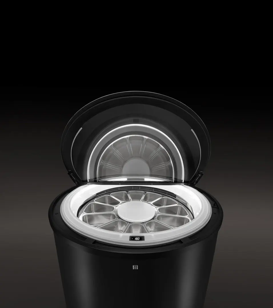Tonda, nella nuova edizione 2024 introduce sensori ottici di ultima generazione che consentono di attivare e disattivare i comandi di rotazione delle vaschette semplicemente con la gestualità delle mani.
