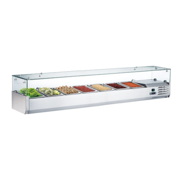VETRINA INGREDIENTI REFRIGERATA 12 VASCHETTE GN1/3 – Statica – AK25438 – Temp.+2C°/+8C° – Dim. cm 250×39,5×43,5