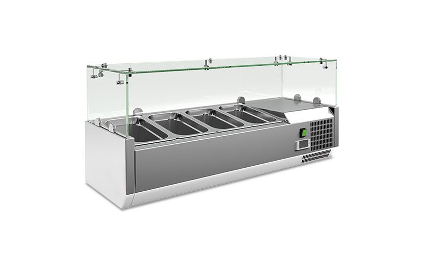 VETRINA INGREDIENTI REFRIGERATA 4 vaschette GN 1/4 – MOD. VRX 1000 330 FG – Temperatura +2°C/+8°C – Dim. cm. L100xP33,5xh43,5