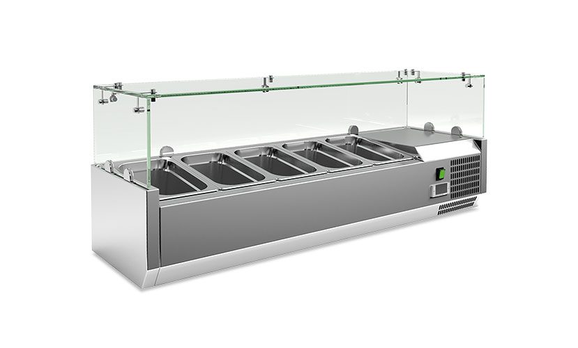 VETRINA INGREDIENTI REFRIGERATA 5 vaschette GN 1/4 – MOD. VRX 1200 330 FG – Temperatura +2°C/+8°C – Dim. cm. L120xP33,5xh43,5