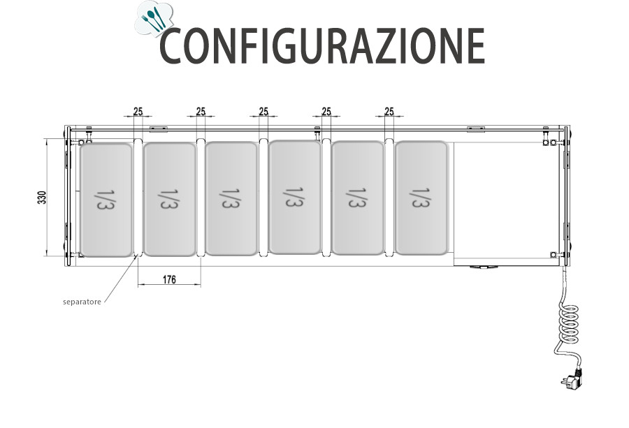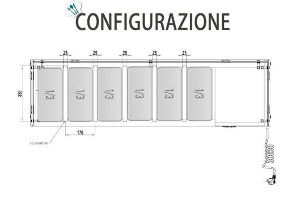 VETRINA INGREDIENTI REFRIGERATA 6 VASCHETTE GN1/3 Dim. Cm 141,5×39,5×46,5h