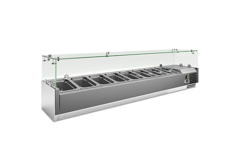 VETRINA INGREDIENTI REFRIGERATA 8 vaschette GN 1/4 – MOD. VRX 1600 330 FG – Temperatura +2°C/+8°C – Dim. cm. L160xP33,5xh43,5