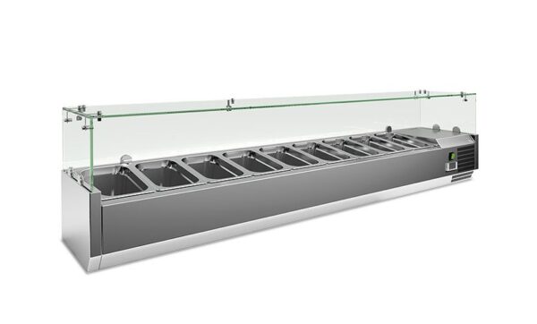 VETRINA INGREDIENTI REFRIGERATA 9 vaschette GN 1/4 – MOD. VRX 1800 330 FG – Temperatura +2°C/+8°C – Dim. cm. L180xP33,5xh43,5