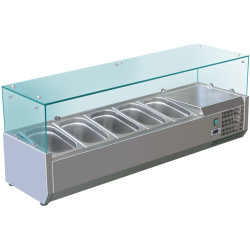 VETRINA INGREDIENTI REFRIGERATA VASCHETTE 4xGN1/3 + 1xGN1/2 – Statica – AK14438 – Temp.+2C°/+8C° – Dim. cm 140×39,5×43,5